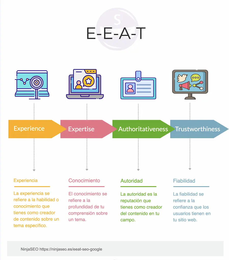 | Experiencia | La habilidad o conocimiento que tienes sobre un tema específico | Demostrar tu experiencia a través de tu contenido |