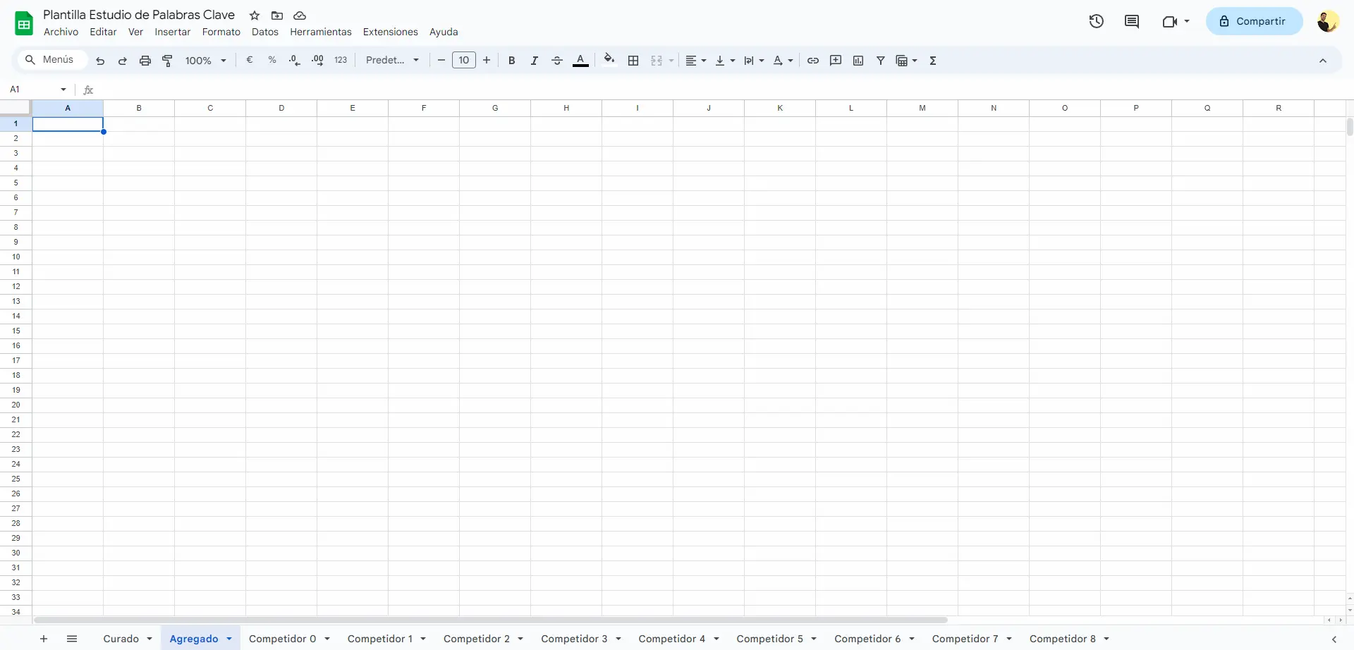 Si prefieres descargar una plantilla de Google Sheets (plantilla keyword research) ya preparada con todos los pasos que vamos a seguir a continuación, puedes hacerlo al final del artículo 😉