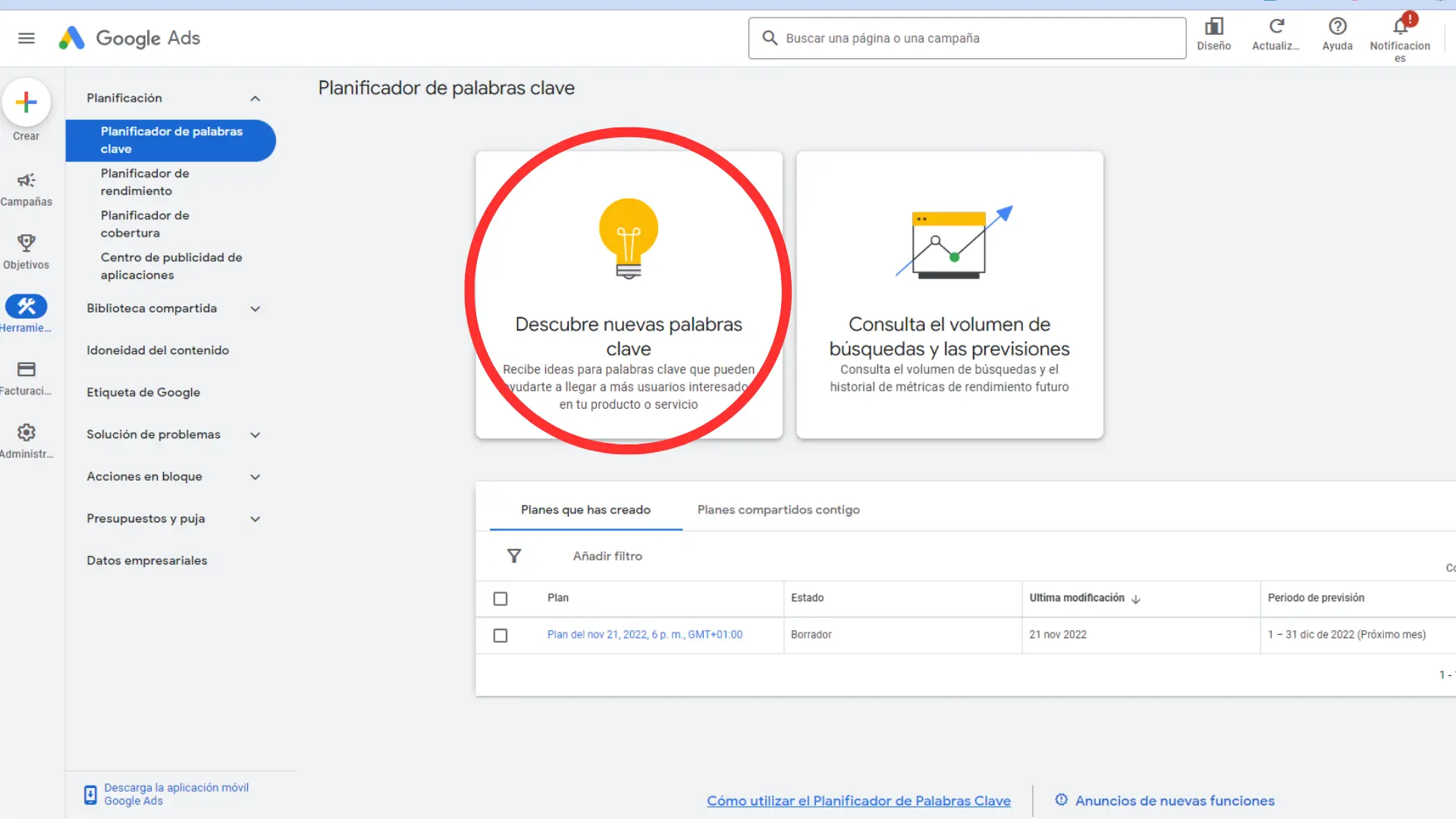 Descubre nuevas palabras clave con el planificador de Google Ads