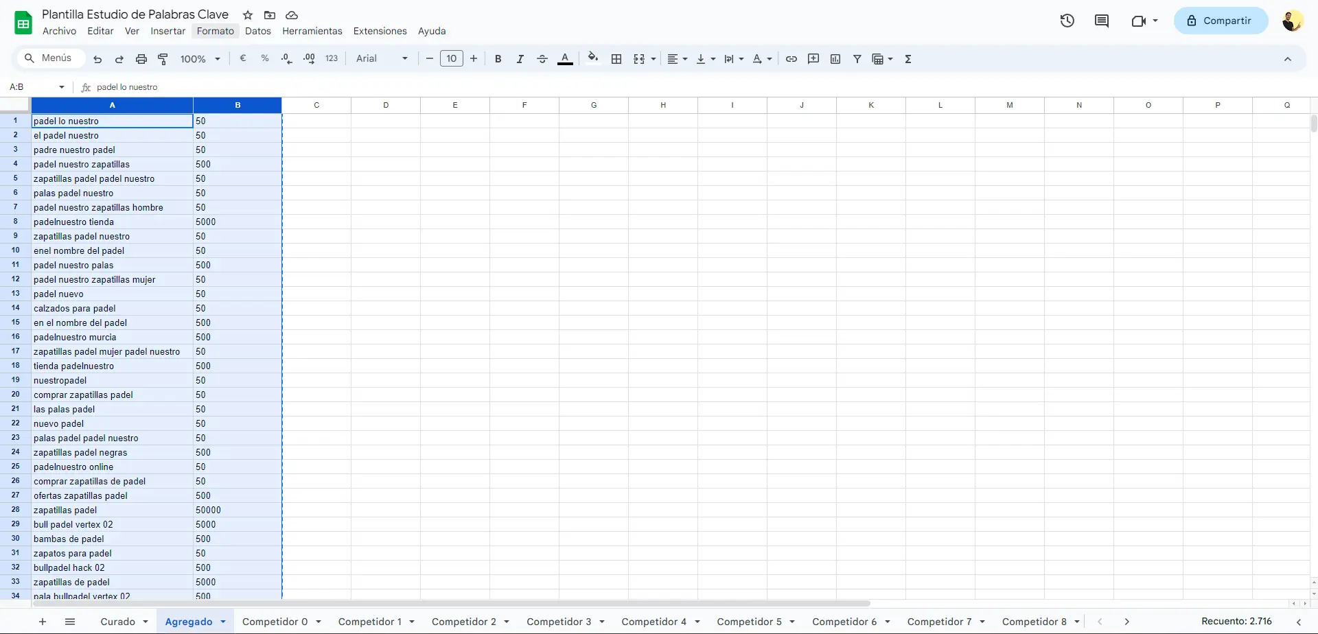 Ahora repite los pasos para cada uno de los competidores que queiras analizar y extraer sus palabras clave.